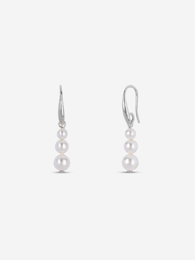 These silver drop earrings have soft pearls that move gently under the ear for an elegant and feminine look. They feel light, are comfortable to wear, and have hook closures. Made of 925 silver with a protective coating.