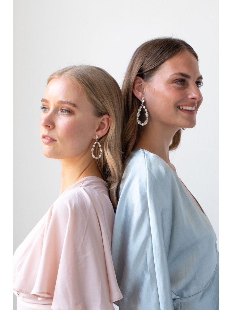The Janey earrings by Abrazi are the perfect mix of pretty and stylish. Made with sparkling Swarovski crystals and finished in shiny 14-carat gold plating, they’re a beautiful choice for brides, bridesmaids, or anyone who loves a little extra sparkle.