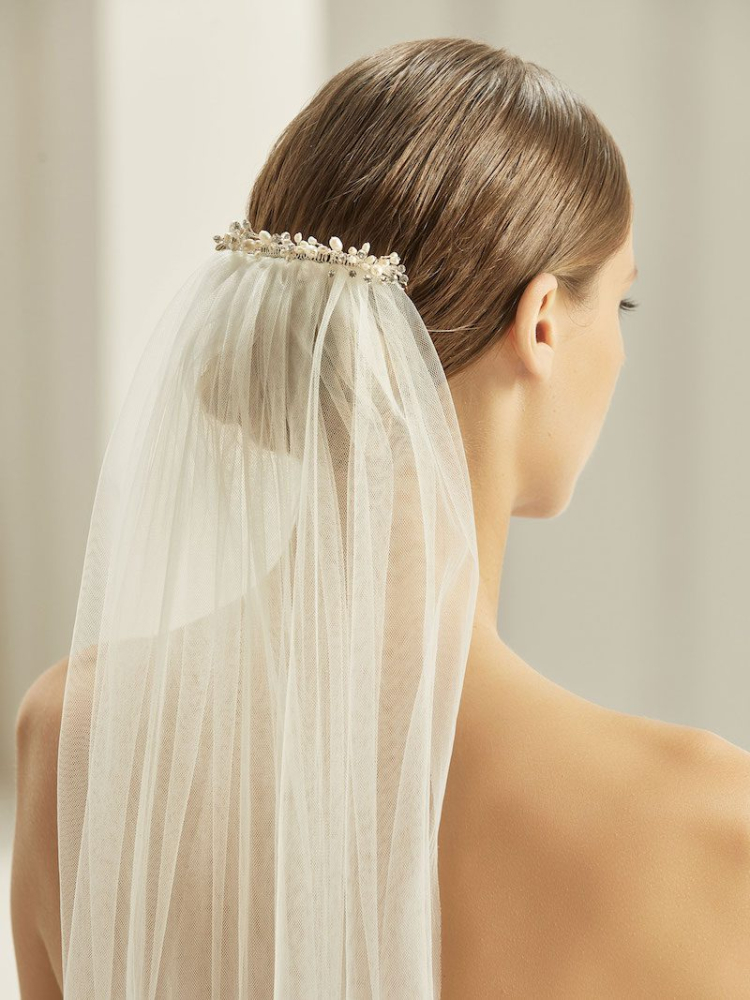 Bianco Evento veil clip decorated with sparkling stones and pearls.
