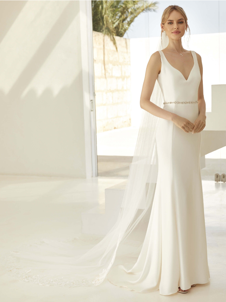 Offering a luxurious finish, the Bianco Evento S426 veil is an extra-long, single-layer veil in diamond tulle measuring 300 cm with a lace edge at the bottom and a cut edge at the top. Includes a comb for easy placement, perfect for your bridal look.