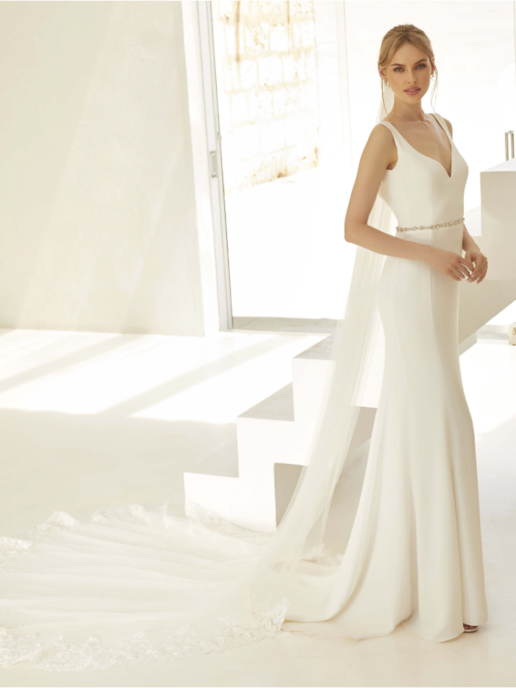Make an elegant statement with the Bianco Evento S437 Veil. Designed in soft tulle, this extra-long, single-layer veil measures 300 cm with a cut edge at the top and a lace edge at the bottom—ideal for brides seeking refinement. It includes a comb for easy placement.