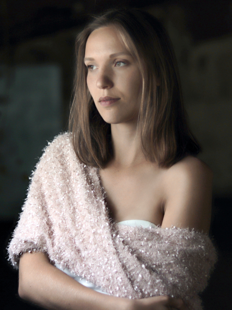 It is made of stretchy cuddly knit and it caresses the arms and keeps you nice and warm.