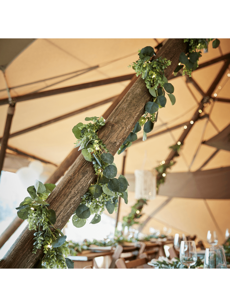 This artificial leaves garland with lights is the perfect decoration for your wedding day. Cover your venue from top to bottom with this chic botanical garland that lights up. Drape the foliage garland on tables, or wrap around doorways and mantelpieces for an impressive display. Perfect for creating a magical centrepiece that your guests will adore. Match it with other lovely wedding decorations from the Botanical Wedding collection.