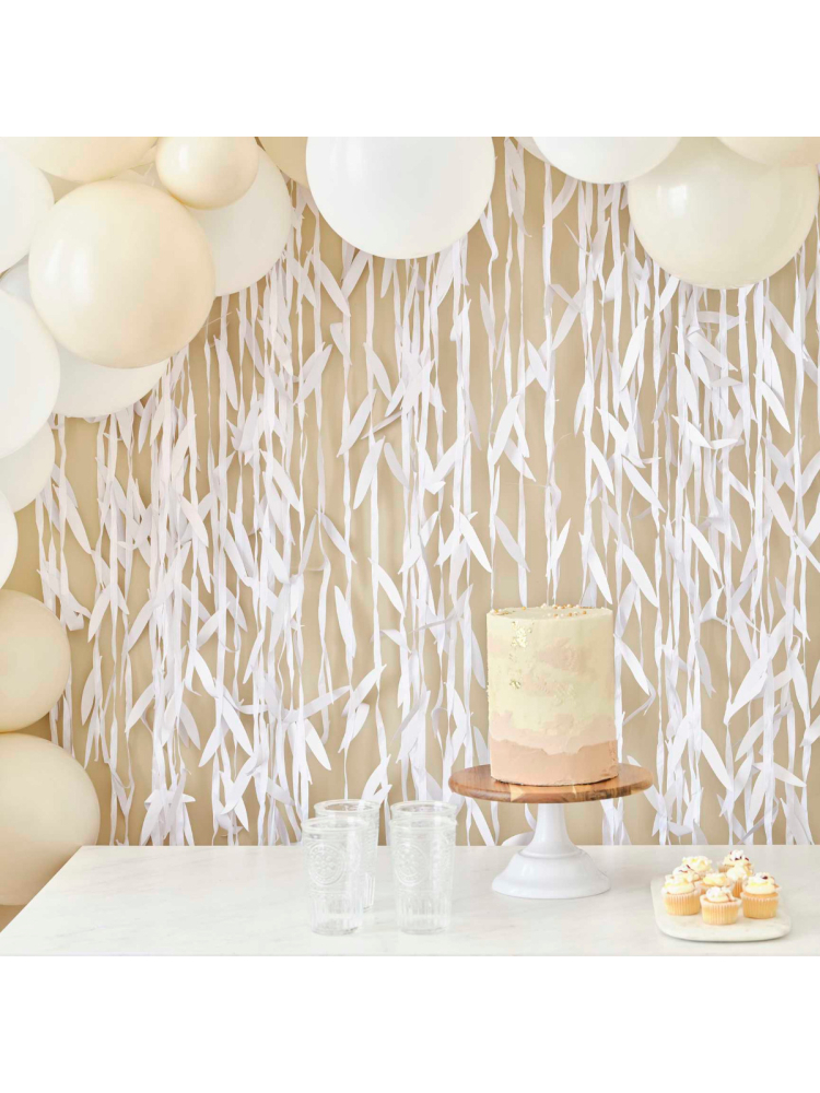 Stunning white leaf backdrop completes your room as a showstopping centrepiece. The white colour is a versatile backdrop to use as a photobooth backdrop or for your reception.