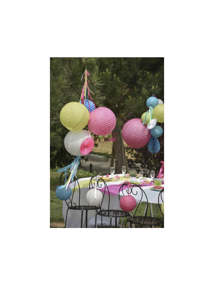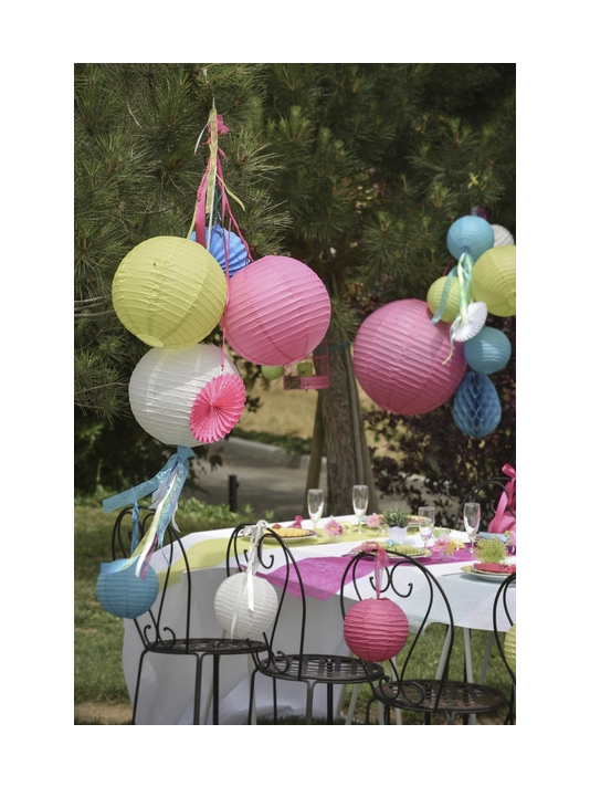 Hang the lanterns above the tables during dinner. In the trees of the party garden or in the party room. Combine various colors with each other for a festive result.
