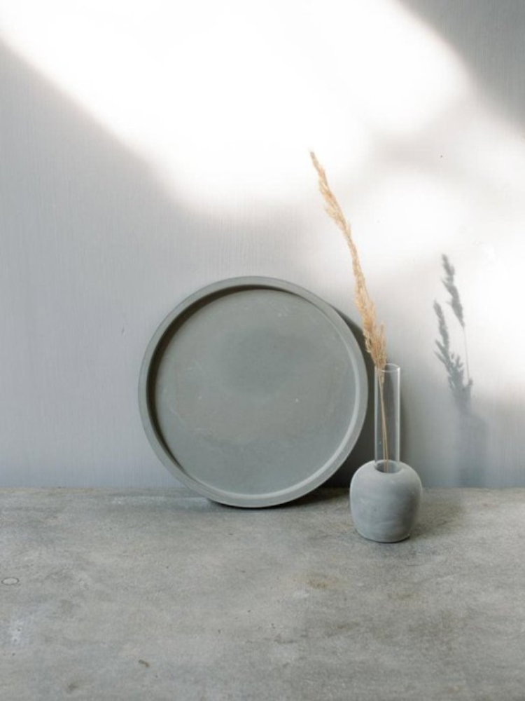 Discover Leeff 18377 Tray Tigo S, an elegant grey concrete tray designed to showcase vases, candles and small treasures.