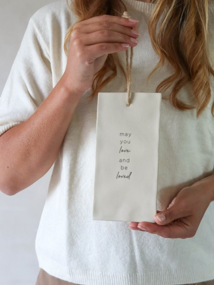 This special tile by Leeff features a unique silhouette and a handwritten message that warms the heart: May You Love and Be Loved. Give it a spot on the wall or a shelf as a daily reminder of what truly matters. A tender keepsake, lovely to give or receive.