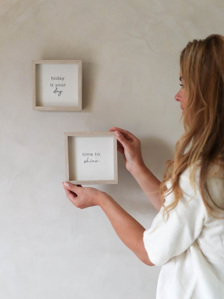 The linen texture and simple design blend easily with different interiors, creating a calm, welcoming look. It brings a cozy accent to a shelf, bedside or gallery wall without overpowering your decor.