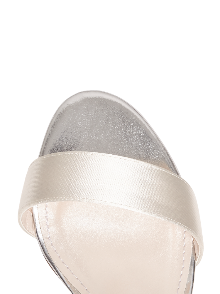 The Rainbow Club Margot wedding shoes are the perfect choice for brides who love clean lines, timeless style and understated luxury. Designed in a soft ivory satin, these elegant bridal sandals complement almost any wedding dress – from modern minimalist gowns to romantic lace designs.