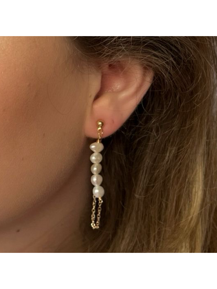 | Care instructions | Make a statement with our gold-plated brass earrings, finished with freshwater pearls. These long earrings are bold yet elegant, perfect for adding a unique and modern touch to your look. Also available in silver. |