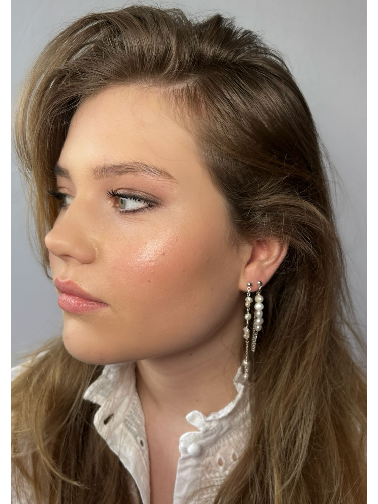 | Care instructions | Make a statement with our silver-plated brass earrings, finished with freshwater pearls. These long earrings are bold yet elegant, perfect for adding a unique and modern touch to your look. Also available in gold. |